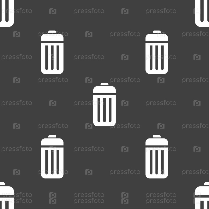 Знак значок корзины. Бесшовный узор на сером фоне. Вектор