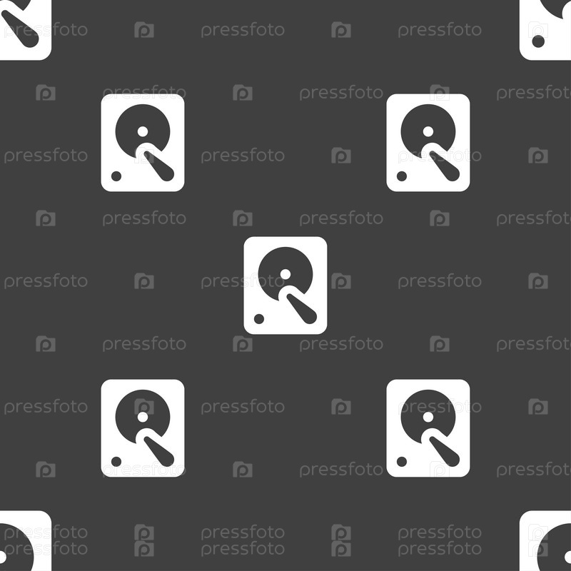 Жесткого диска значок знак. Бесшовный узор на сером фоне. Вектор