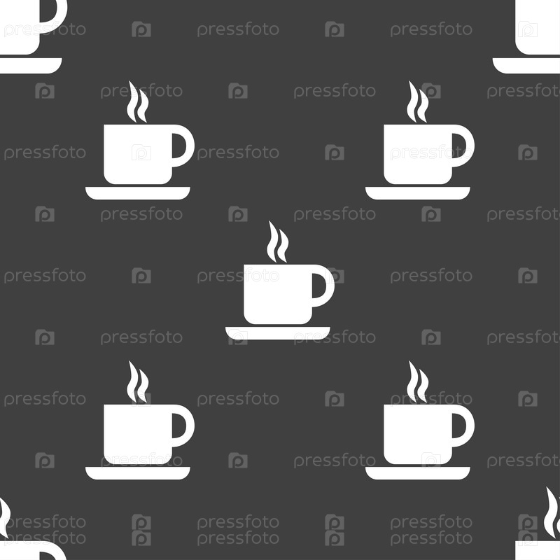 Кофе значок знак. Бесшовный узор на сером фоне. Вектор