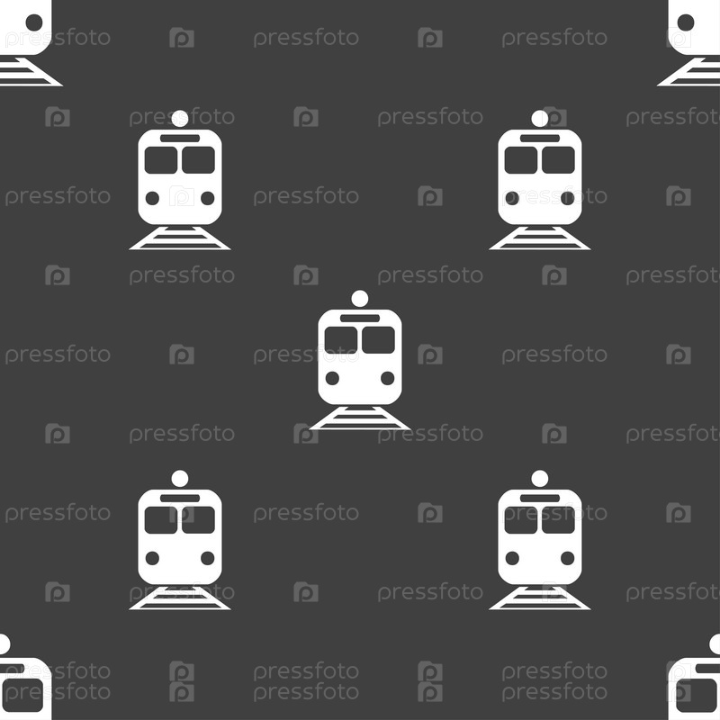 Поезд значок знак. Бесшовный узор на сером фоне. Вектор
