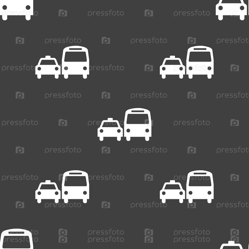 Такси значок знак. Бесшовный узор на сером фоне. Вектор