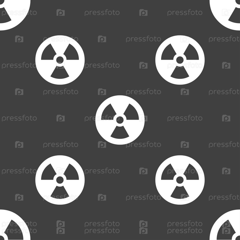 Значок знак радиации. Бесшовный узор на сером фоне. Вектор