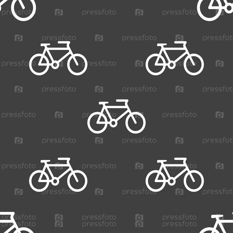 Велосипед значок знак. Бесшовный узор на сером фоне. Вектор
