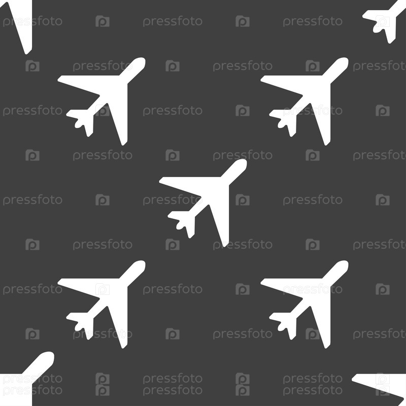 Самолет значок знак. Бесшовный узор на сером фоне. Вектор