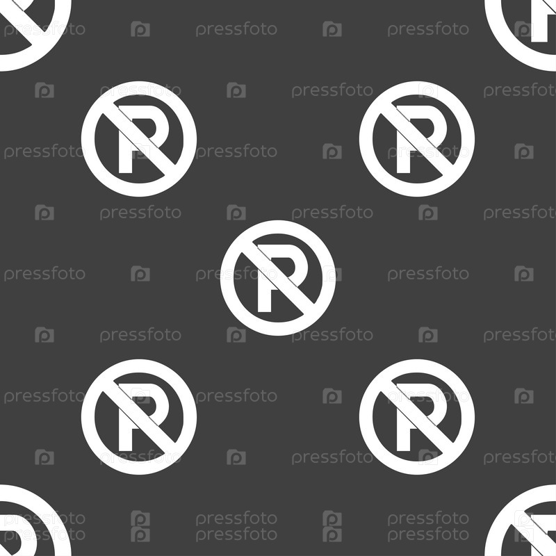 Не парковка значок знак. Бесшовный узор на сером фоне. Вектор