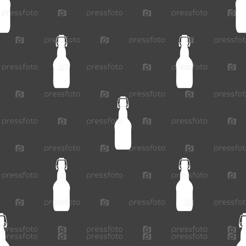 Бутылка значок знак. Бесшовный узор на сером фоне. Вектор