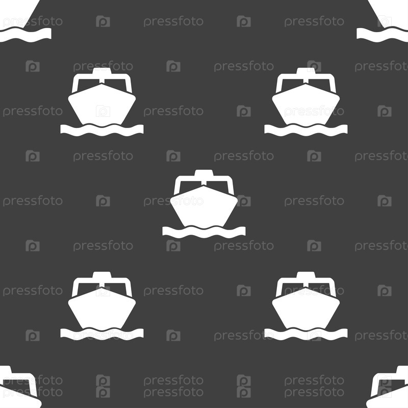 Лодка значок знак. Бесшовный узор на сером фоне. Вектор