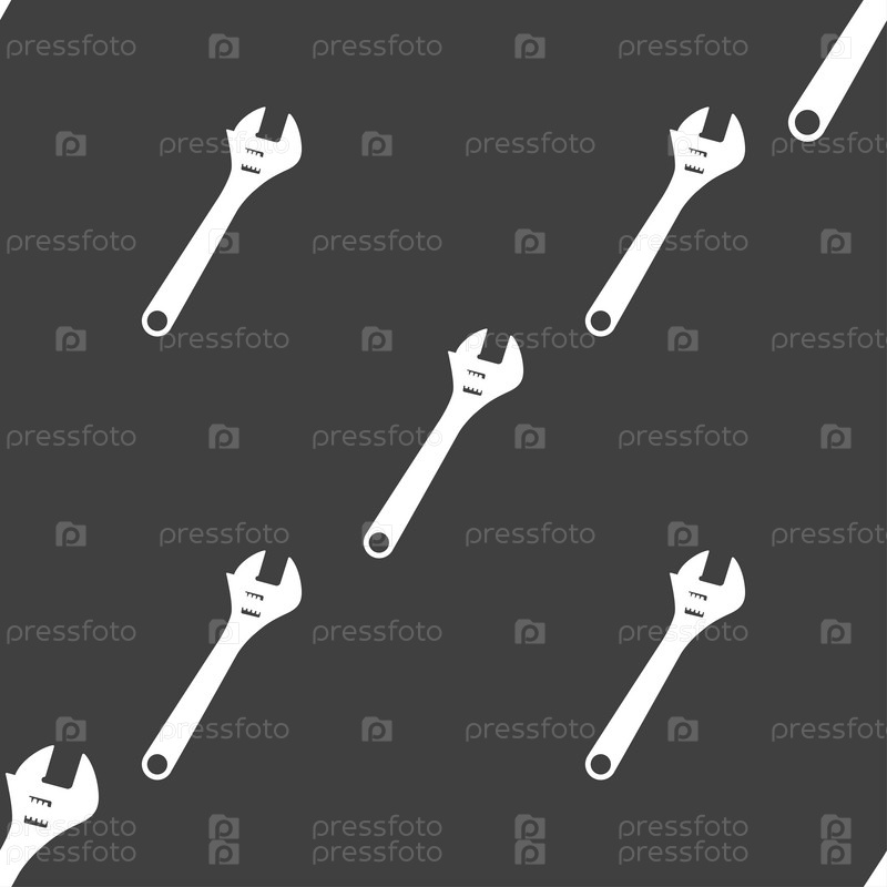 Гаечный ключ значок знак. Бесшовный узор на сером фоне. Вектор