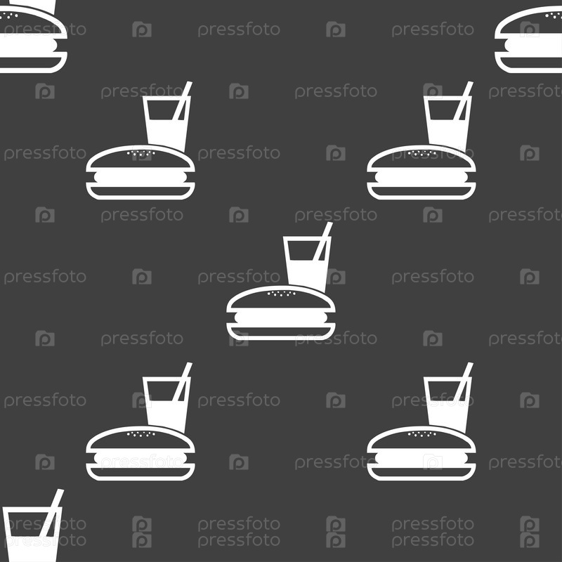 Обед окно значок знак. Бесшовный узор на сером фоне. Вектор