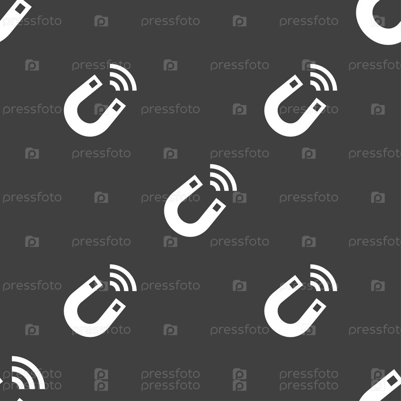 Магнит значок знак. Бесшовный узор на сером фоне. Вектор