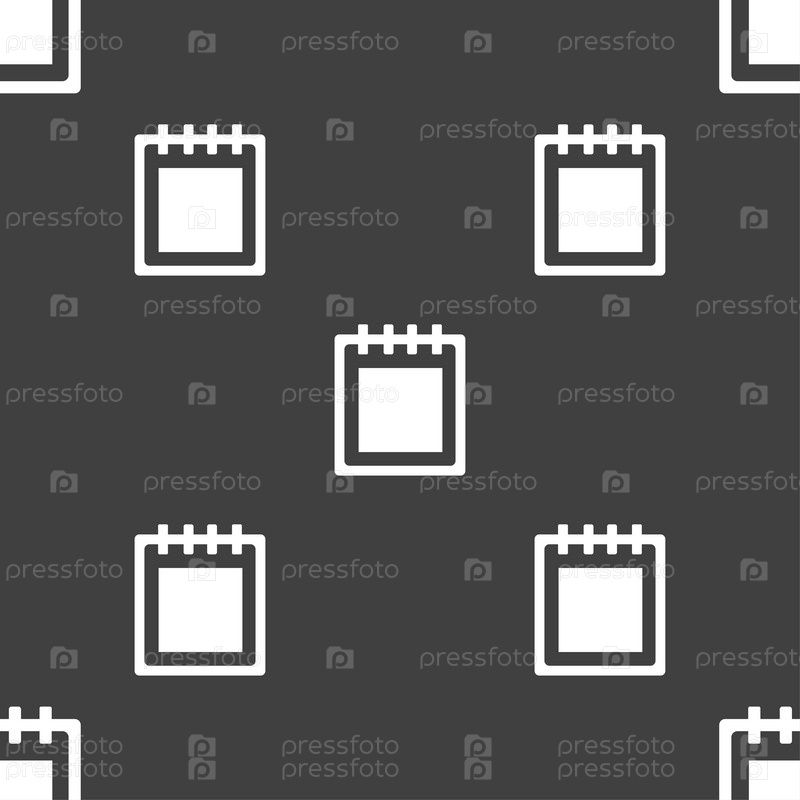 Блокнот значок знак. Бесшовный узор на сером фоне. Вектор