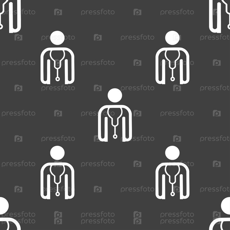 Доктор значок знак. Бесшовный узор на сером фоне. Вектор