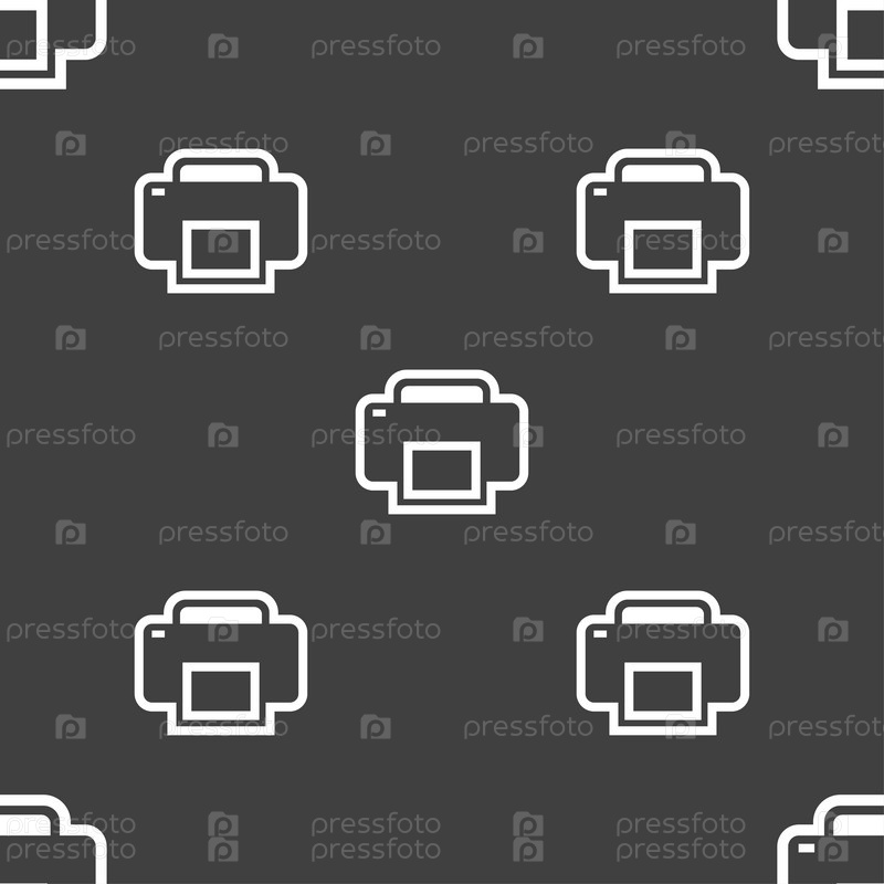 Печать значок знак. Бесшовный узор на сером фоне. Вектор