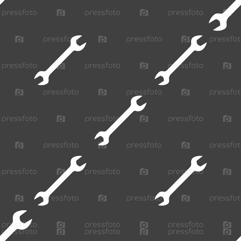 Гаечный ключ значок знак. Бесшовный узор на сером фоне. Вектор