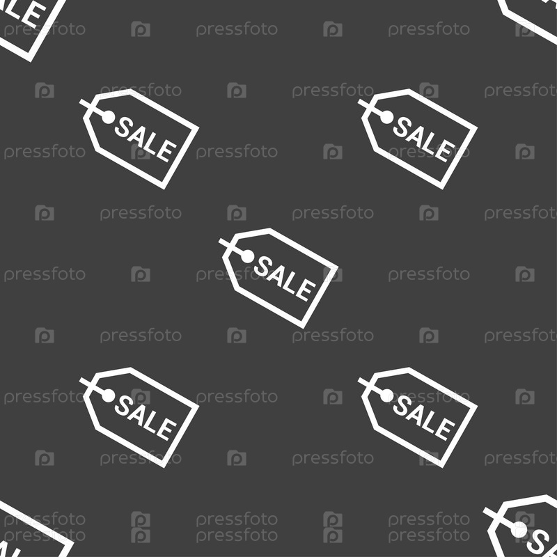 Продажа значок знак. Бесшовный узор на сером фоне. Вектор