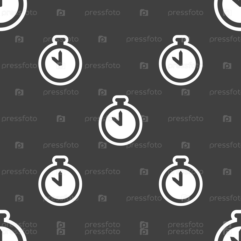Секундомер значок знак. Бесшовный узор на сером фоне. Вектор
