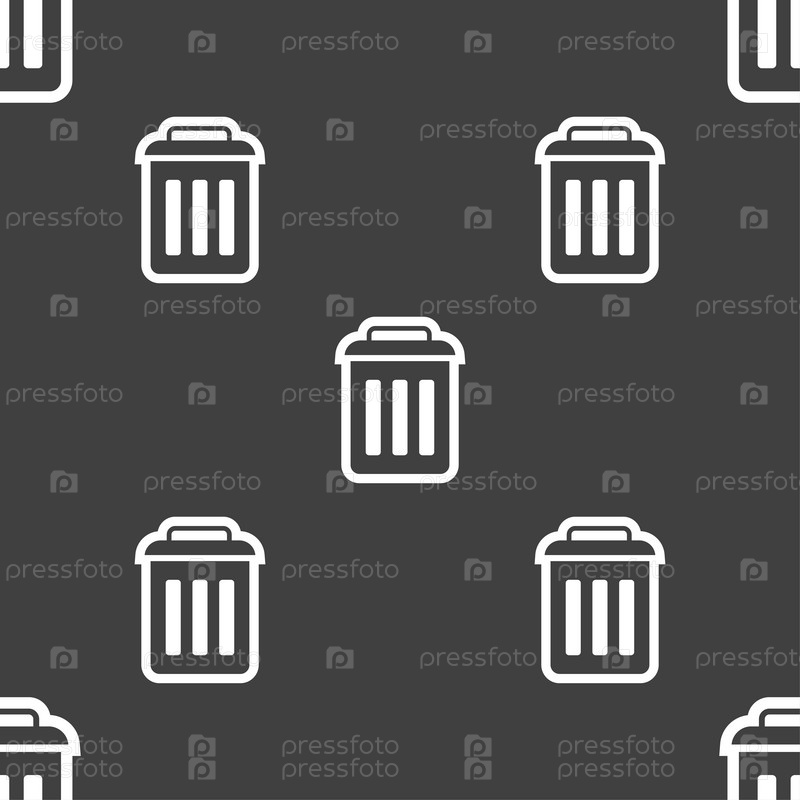 Знак значок корзины. Бесшовный узор на сером фоне. Вектор