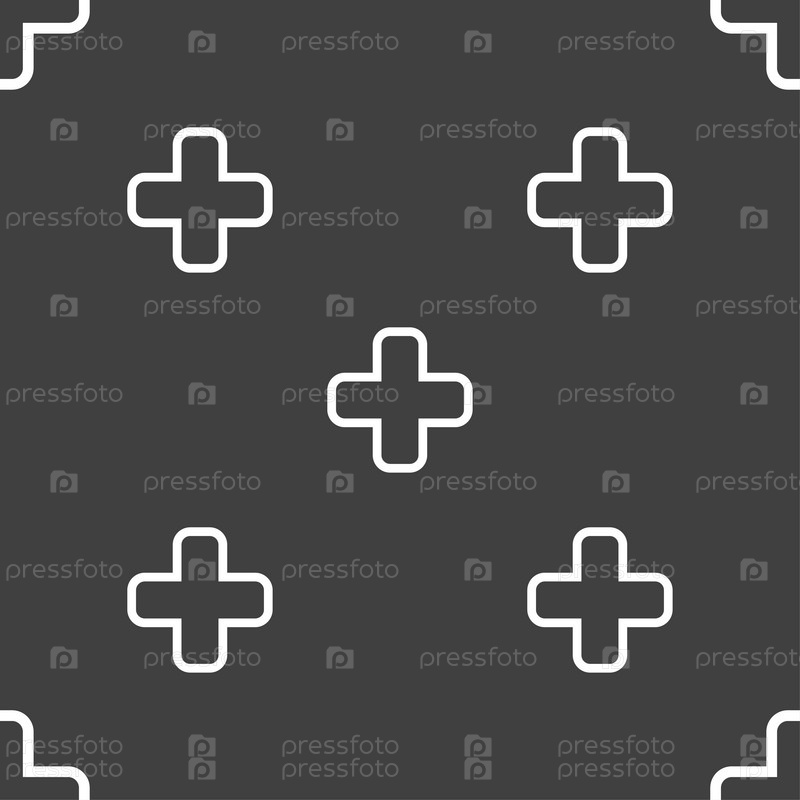Плюс значок знак. Бесшовный узор на сером фоне. Вектор