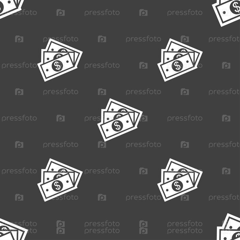 Значок знак доллара США. Бесшовный узор на сером фоне. Вектор