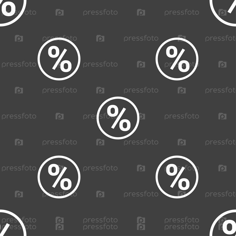 Процент скидки значок знак. Бесшовный узор на сером фоне. Вектор