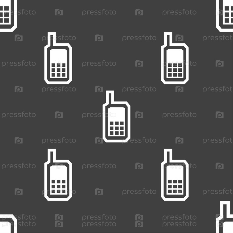 Мобильный телефон значок знак. Бесшовный узор на сером фоне. Вектор