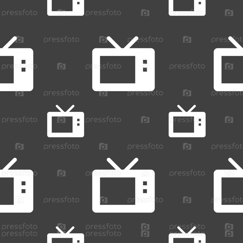 Ретро ТВ режиме значок знак. Бесшовный узор на сером фоне. Вектор