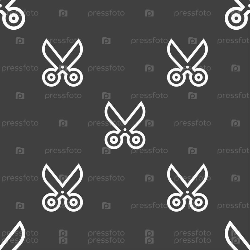Ножницы значок знак. Бесшовный узор на сером фоне. Вектор