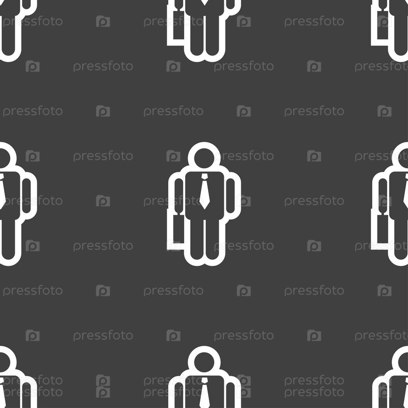 Бизнесмен значок знак. Бесшовный узор на сером фоне. Вектор