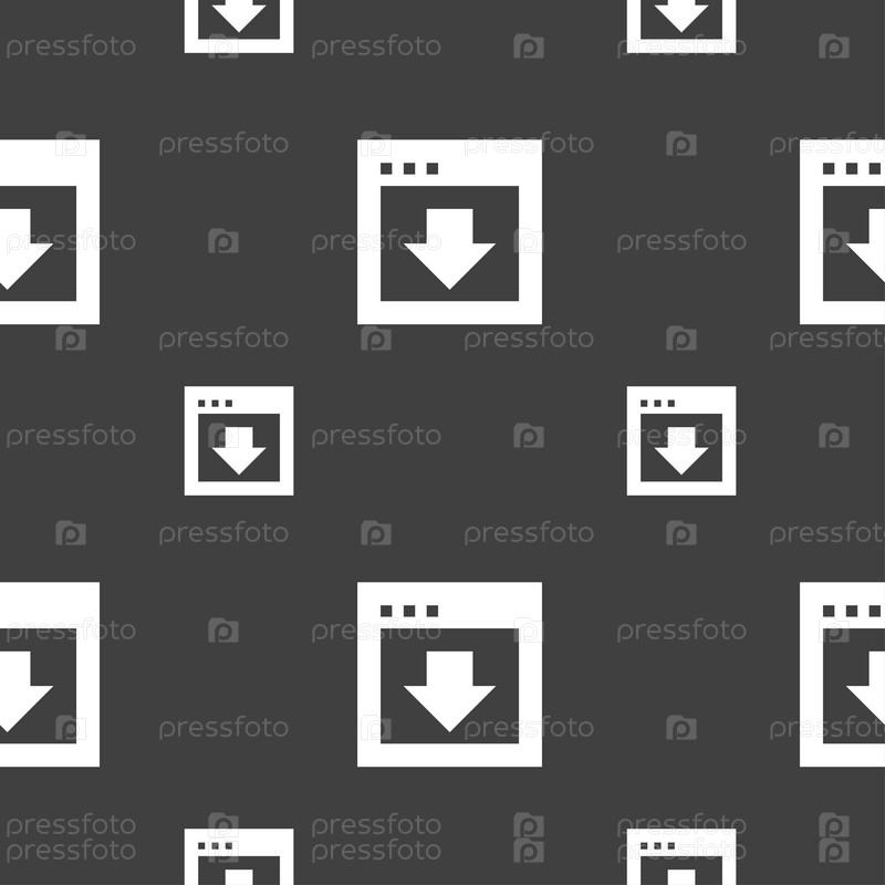 Стрелка вниз, скачать, загрузки, знак значок резервного копирования. Бесшовный узор на сером фоне. Вектор