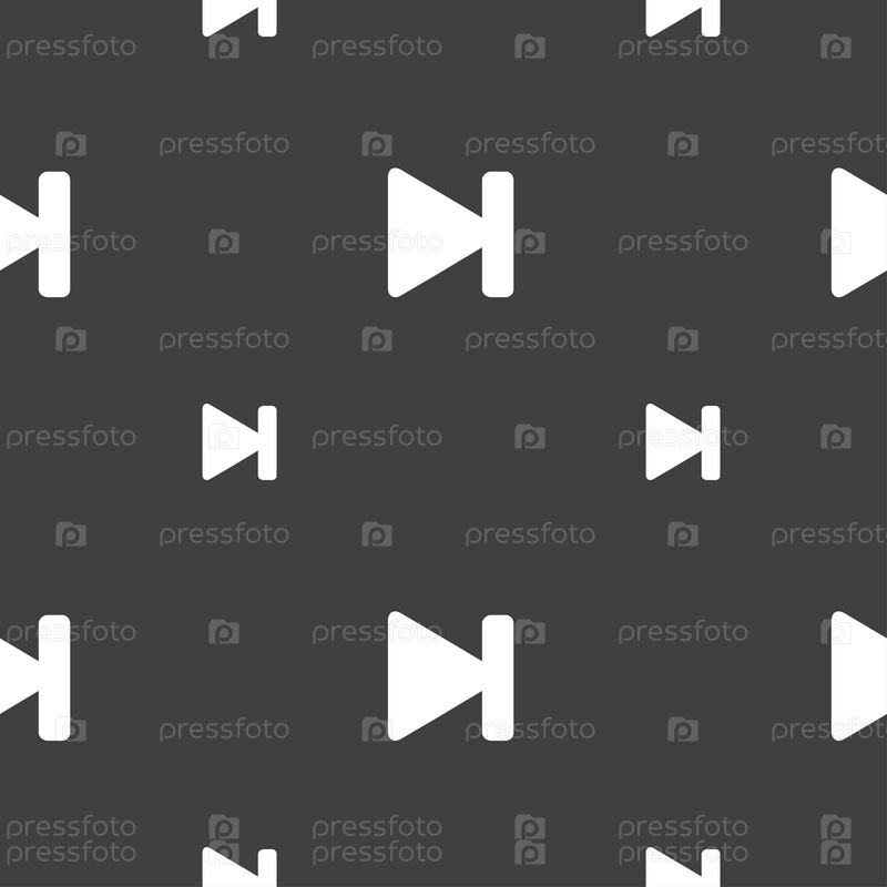 Следующий трек значок знак. Бесшовный узор на сером фоне. Вектор