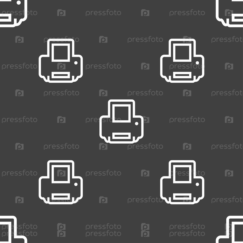 Печать значок знак. Бесшовный узор на сером фоне. Вектор