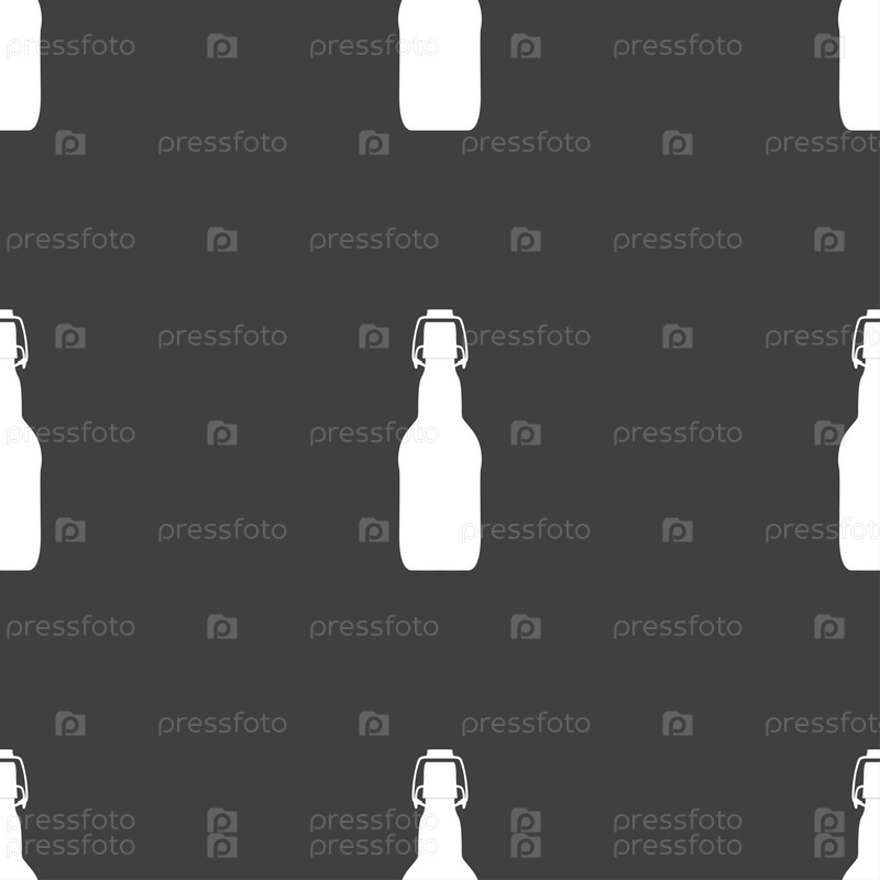 Бутылка значок знак. Бесшовный узор на сером фоне. Вектор