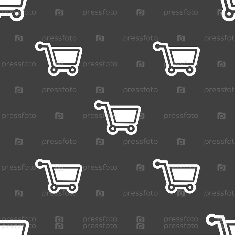Торговый знак значок Корзина. Бесшовный узор на сером фоне. Вектор