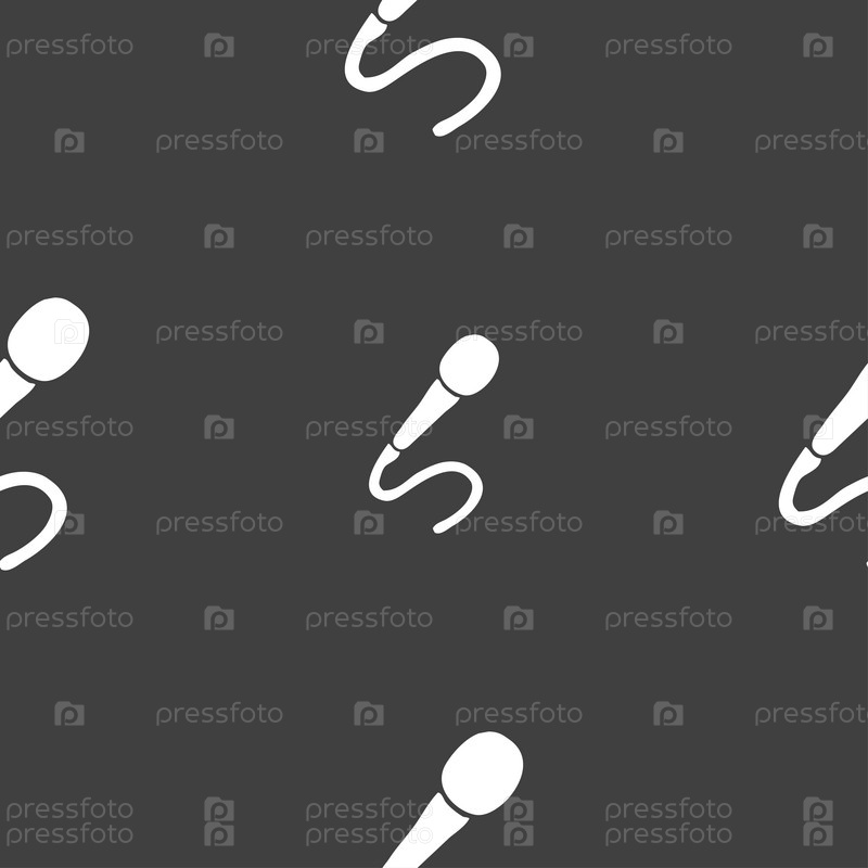 Значок микрофона знак. Бесшовный узор на сером фоне. Вектор