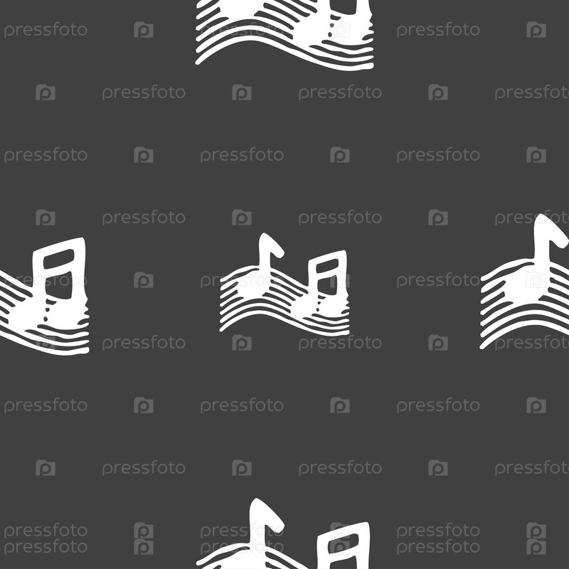 Ноты, музыка, рингтон значок знак. Бесшовный узор на сером фоне. Вектор