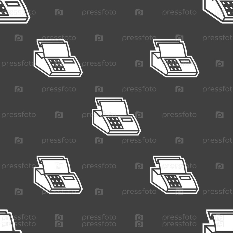 Кассовый аппарат машина значок знак. Бесшовный узор на сером фоне. Вектор