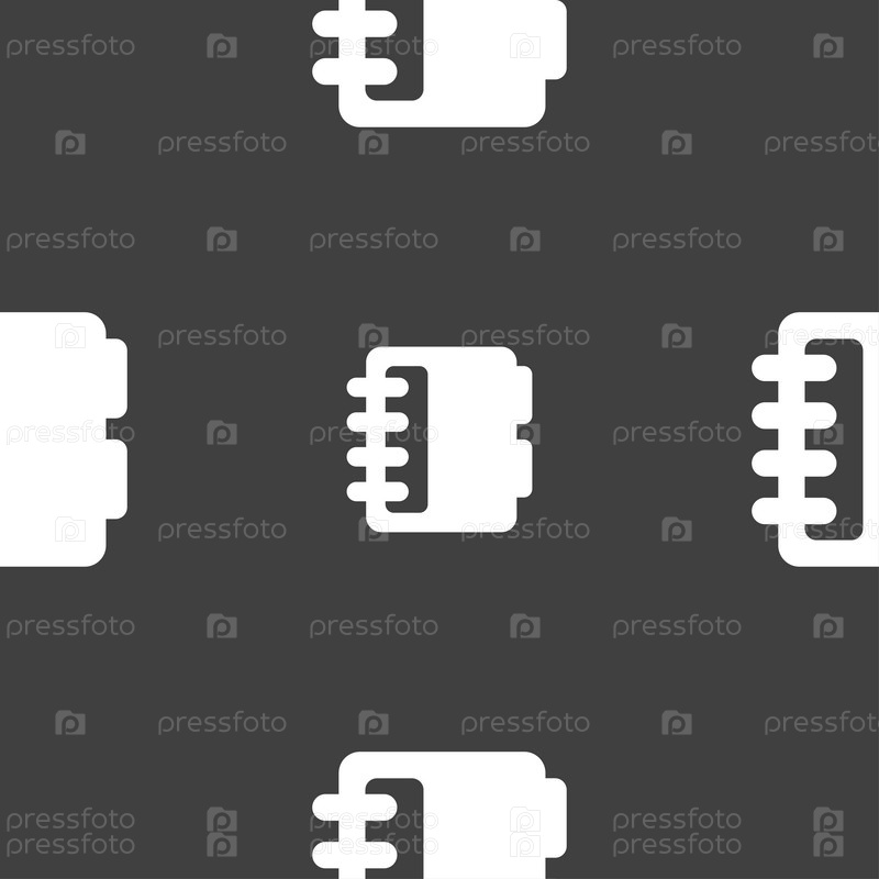 Блокнот, знак значок календаря. Бесшовный узор на сером фоне. Вектор
