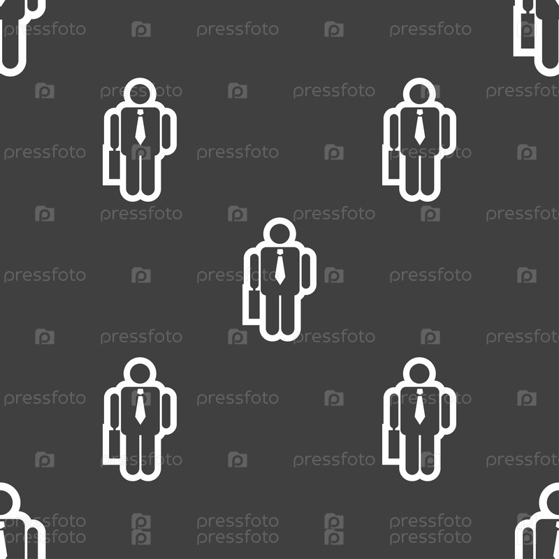 Бизнесмен значок знак. Бесшовный узор на сером фоне. Вектор