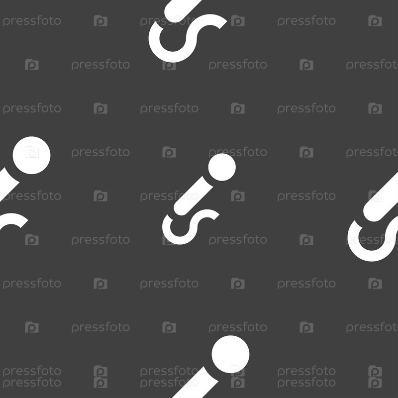 Значок микрофона знак. Бесшовный узор на сером фоне. Вектор