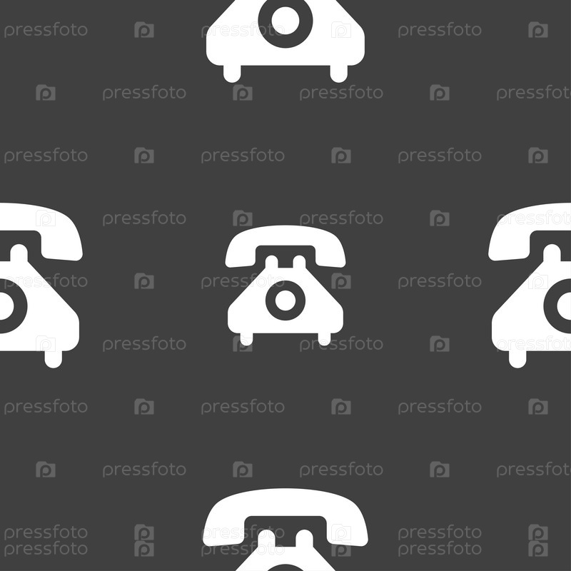 Ретро телефон телефон значок знак. Бесшовный узор на сером фоне. Вектор