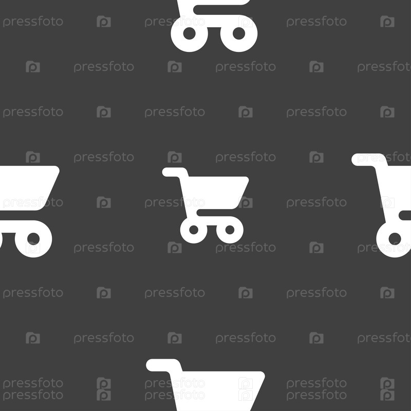 Торговый знак значок Корзина. Бесшовный узор на сером фоне. Вектор