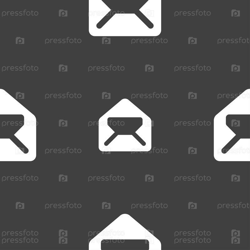 Почта, конверт, письмо значок знак. Бесшовный узор на сером фоне. Вектор