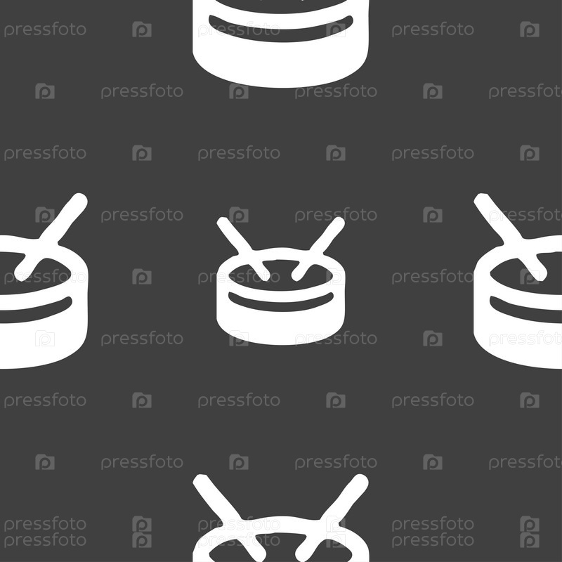 Барабан значок знак. Бесшовный узор на сером фоне. Вектор