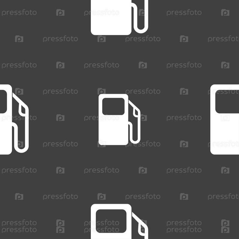 Авто газ станции значок знак. Бесшовный узор на сером фоне. Вектор