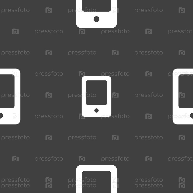 Планшетный компьютер значок знак. Бесшовный узор на сером фоне. Вектор