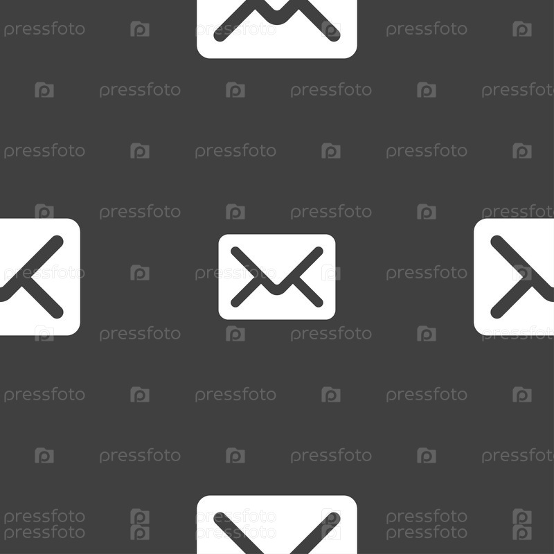 Почта, конверт, письмо значок знак. Бесшовный узор на сером фоне. Вектор