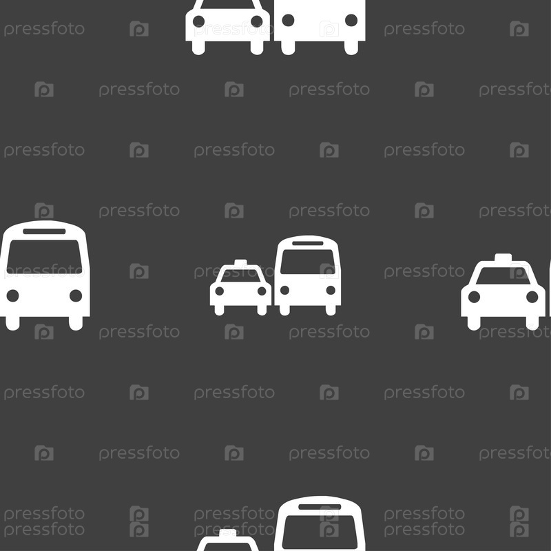 Такси значок знак. Бесшовный узор на сером фоне. Вектор