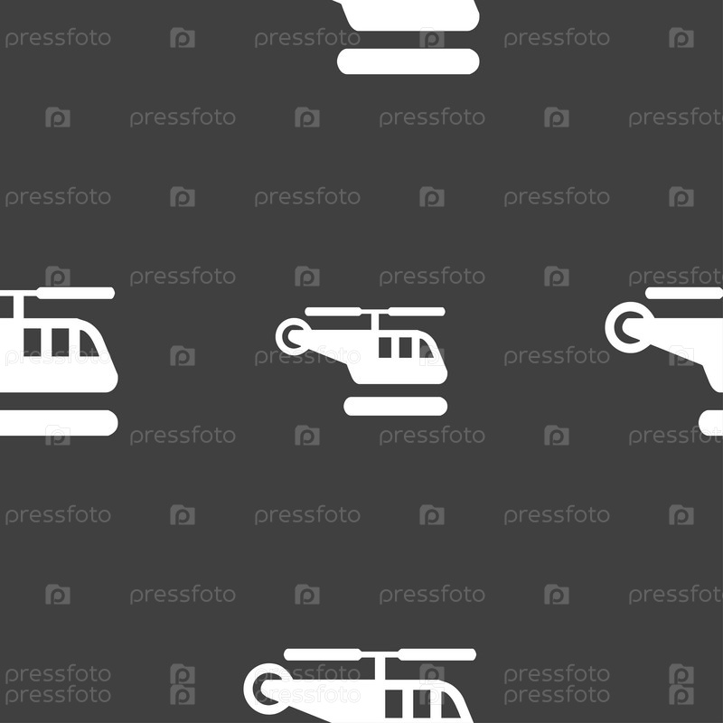 Вертолет значок знак. Бесшовный узор на сером фоне. Вектор