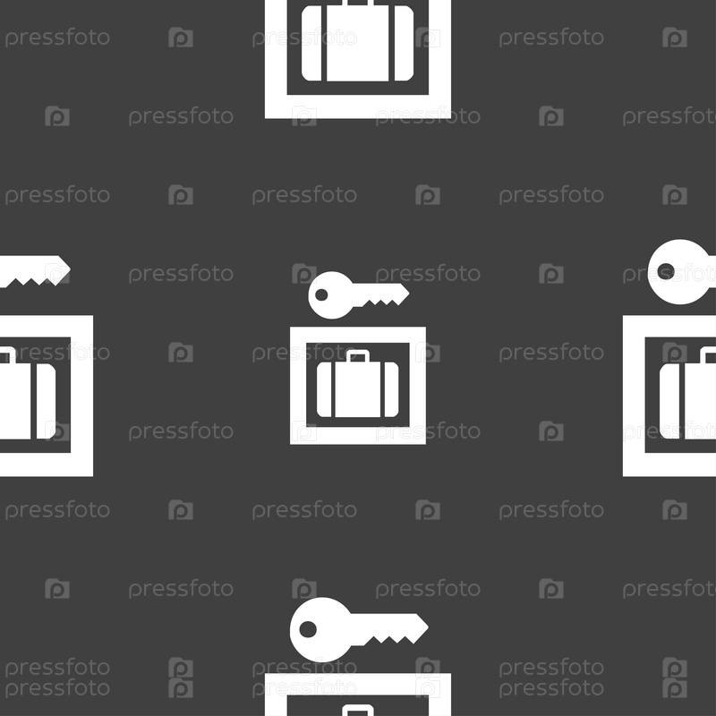 Камера хранения значок знак. Бесшовный узор на сером фоне. Вектор