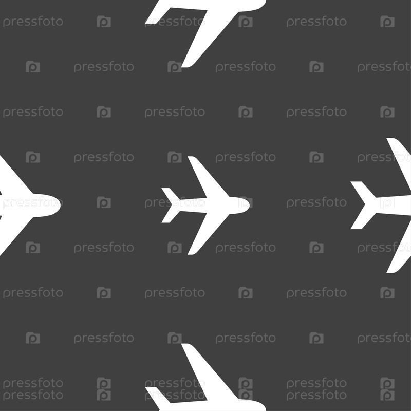 Плоскости значок знак. Бесшовный узор на сером фоне. Вектор